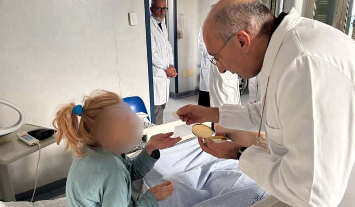 Il porporato, come raccontano i cappellani della struttura ospedaliera, ha girato «sorridendo, ascoltando, incoraggiando». Indossato il camice bianco, si è soffermato a parlare con la signora Teresa, un’anziana ricoverata, e le ha detto: «Sono da te perché sei preziosa!». A Filippo, invece, ha stretto forte la mano e dato una benedizione. (I nomi sono di fantasia, ndr).