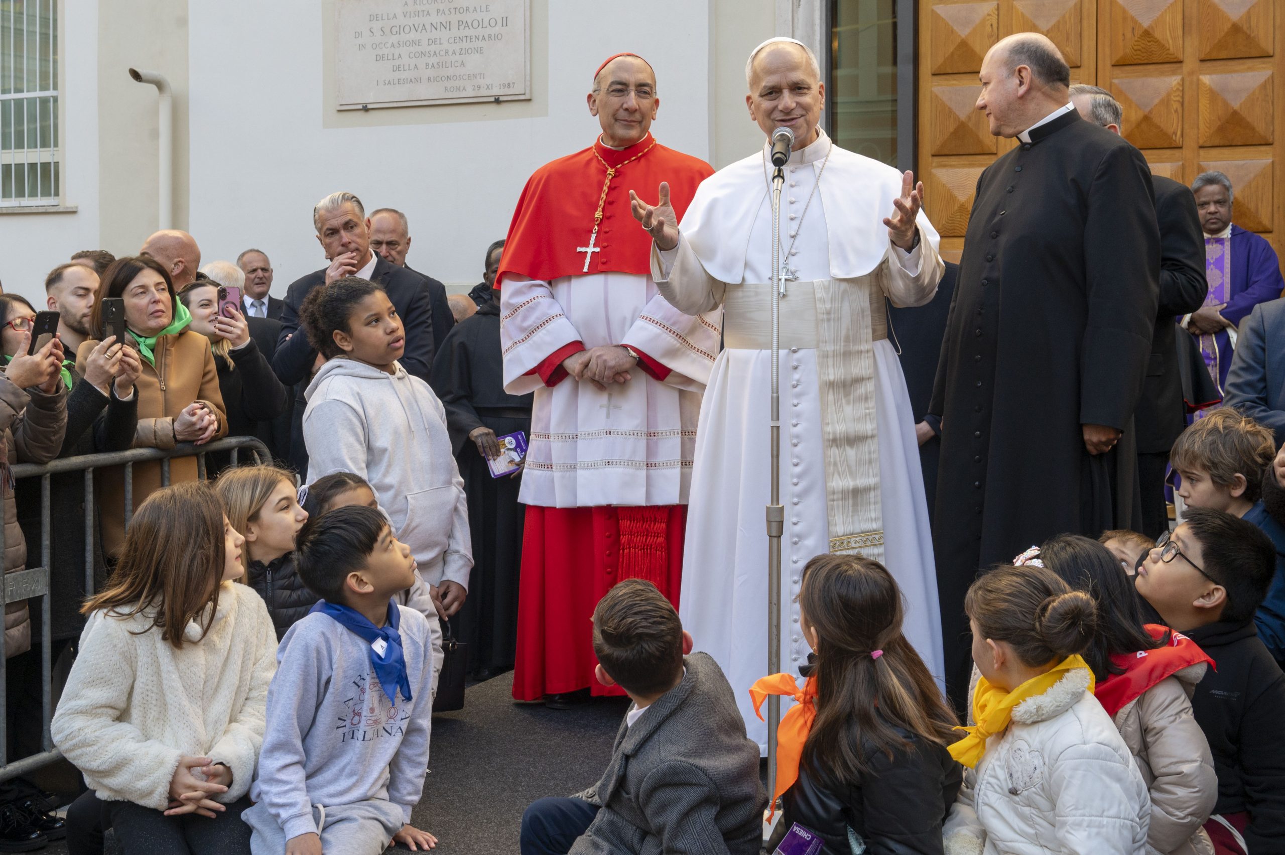 Un unanime grido di esultanza, accompagnato da applausi e dal suono delle campane a festa, ha salutato Papa Leone XIV che alle 8.15 di oggi, domenica 22 febbraio, prima domenica di Quaresima, ha fatto ingresso nel cortile della parrocchia del Sacro Cuore di Gesù a Castro Pretorio, prima tappa della visita pastorale alla comunità di via Marsala, a pochi passi dalla stazione Termini. Accolto, tra gli altri, dai cardinali Baldo Reina, vicario della diocesi di Roma, e Giuseppe Versaldi, titolare della parrocchia e prefetto emerito della Congregazione per l’educazione cattolica, e dal parroco don Javier Ortiz Rodriguez, Leone ha salutato a lungo le centinaia di persone presenti, giovani, volontari e famiglie. «Preghiamo per la pace», ha detto passando davanti alla postazione dei giornalisti.