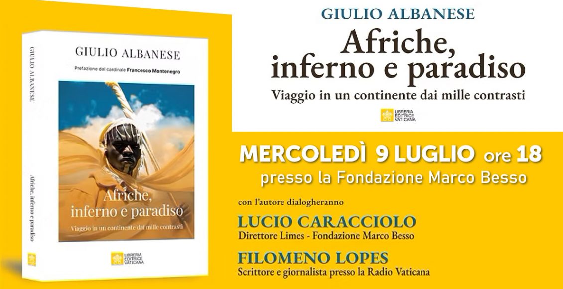 “Afriche, inferno e paradiso. Un viaggio in un continente dai mille contrasti”. È il titolo del volume di padre Giulio Albanese, comboniano e direttore dell’Ufficio per le comunicazioni sociali e dell’Ufficio per la cooperazione missionaria del Vicariato di Roma, edito dalla Lev (Libreria Editrice Vaticana). Il libro, con la prefazione del card. Francesco Montenegro, sarà presentato a Roma, presso la Fondazione Marco Besso, a Largo Argentina 11, a Roma, mercoledì 9 luglio alle 18.