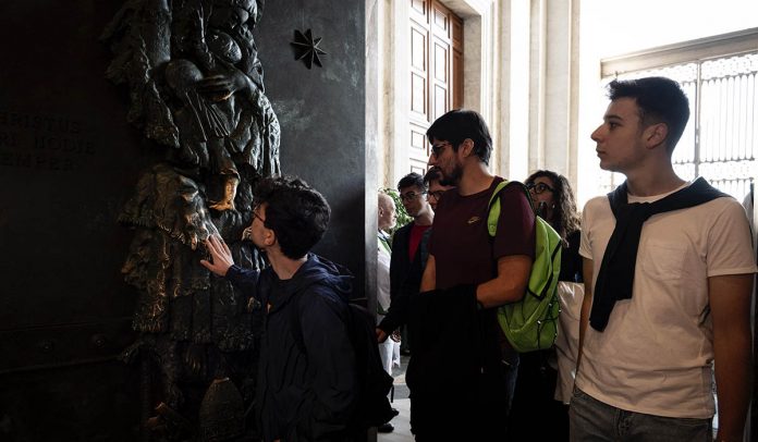 Il Giubileo, «tempo di passaggio e di desiderio di cambiare la nostra vita, rimettendoci in cammino», è appunto l’occasione per ricordare «l’importanza del camminare insieme e di recuperare e nutrire le relazioni». Così il cardinale vicario Baldo Reina si è rivolto ieri mattina, 18 ottobre, agli studenti universitari convenuti nella basilica di San Giovanni in Laterano per la celebrazione dell’Eucaristia in occasione della XXII Giornata del mondo accademico, promossa dall’Ufficio per la pastorale universitaria della diocesi di Roma. Tra i concelebranti, don Maurizio Mirilli, direttore dell’Ufficio del Vicariato, e don Gabriele Vecchione, cappellano della Sapienza e vicedirettore dell’Ufficio diocesano. Presenti nella cattedrale anche i cittadini del VII municipio per celebrare il proprio Giubileo, dopo un pellegrinaggio da piazza Re di Roma e il passaggio della Porta Santa.
